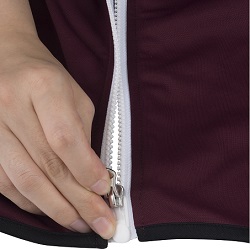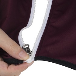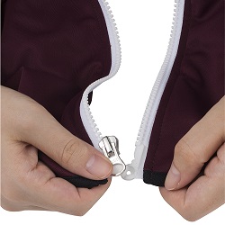| 两手握住拉链底部左右两部分, 一前一后叠放到一起。 | 像按按扣那样稍稍用力按紧, 使两部分嵌合到一起。 (按紧后,拉链会自动旋转嵌合。) | 向上拉动拉头,闭合拉链。 (习惯后,从嵌合到闭合, 均可单手操作完成。) |